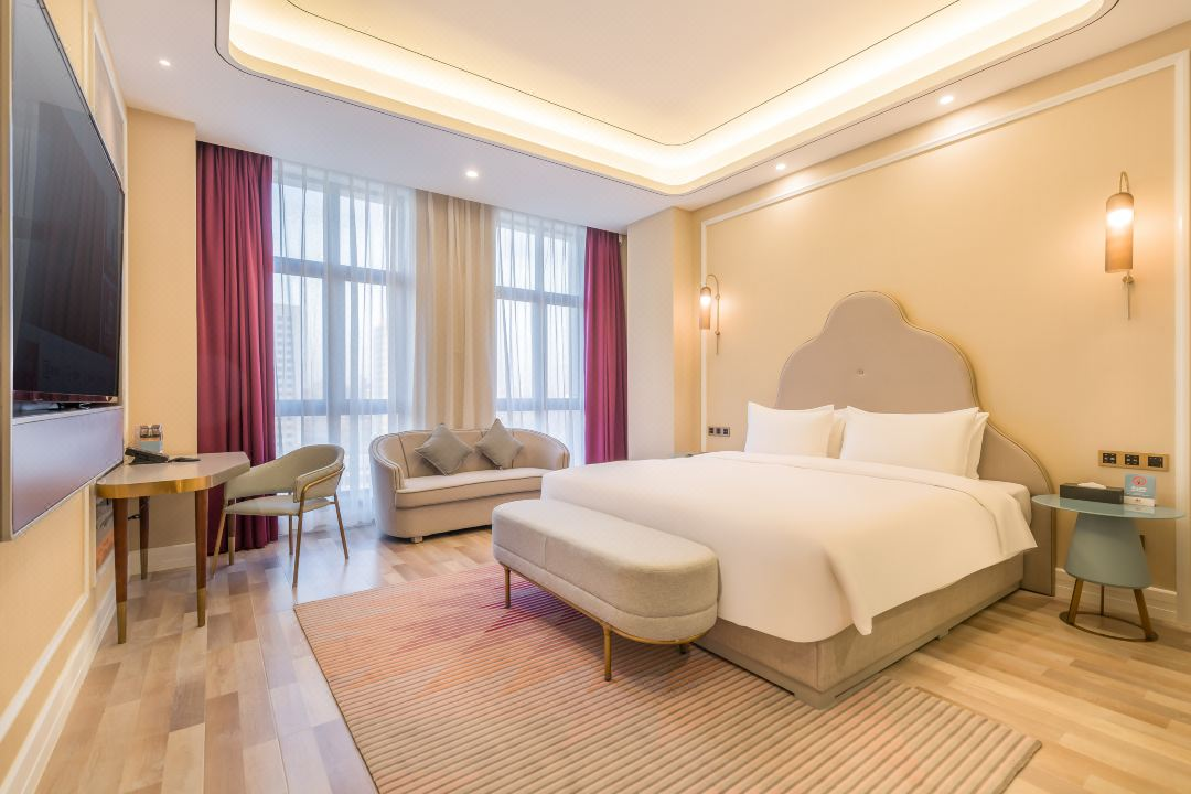 酒店的设计新颖大气,酒店布置典雅,房间古朴、清新的自然生态风格,一个不离家也想去住的酒店是您商务旅行的上佳选择。大理石打造的厅堂气势恢宏,进入酒店的客房,身心仿佛得到了释放。明亮的色彩碰撞,开阔的视野让房间更具空间感,家具与灯光的搭配恰到好处,既不喧宾夺主,又极具艺术特色。让您迅速释放压力的酒店新体验,所有的房间配备了高科技的智能房控系统,在超高速无线网络的覆盖下,可以实现网上预订、支付,一键控制房间灯光、窗帘、电视。智能触控式的镜前灯、智能淋浴温控系统、超大尺寸高清投影、无一不体现着房间的高端品质。客房内所有的洗浴用品均选用专门定制的国际品牌,为每一位下榻的客人带来尊贵享受。